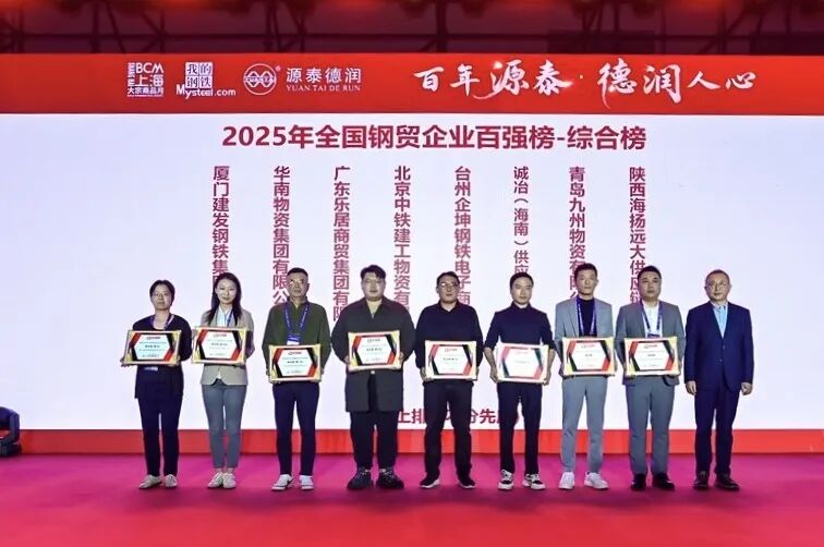 12月19日至21日,2026鋼鐵市場展望暨“我的鋼鐵”年會在上海舉行。在同期舉辦的“2026大宗商品頒獎慶典”上,廈門建發(fā)鋼鐵集團(tuán)有限公司(下稱“建發(fā)鋼鐵集團(tuán)”)榮獲2025年全國鋼貿(mào)企業(yè)百強(qiáng)榜“綜合榜第一位”,旗下建發(fā)金屬榮獲“金屬板材榜第一位”,彰顯了建發(fā)鋼鐵集團(tuán)在鋼鐵供應(yīng)鏈運營、資源整合與綜合服務(wù)能力方面的領(lǐng)先優(yōu)勢。