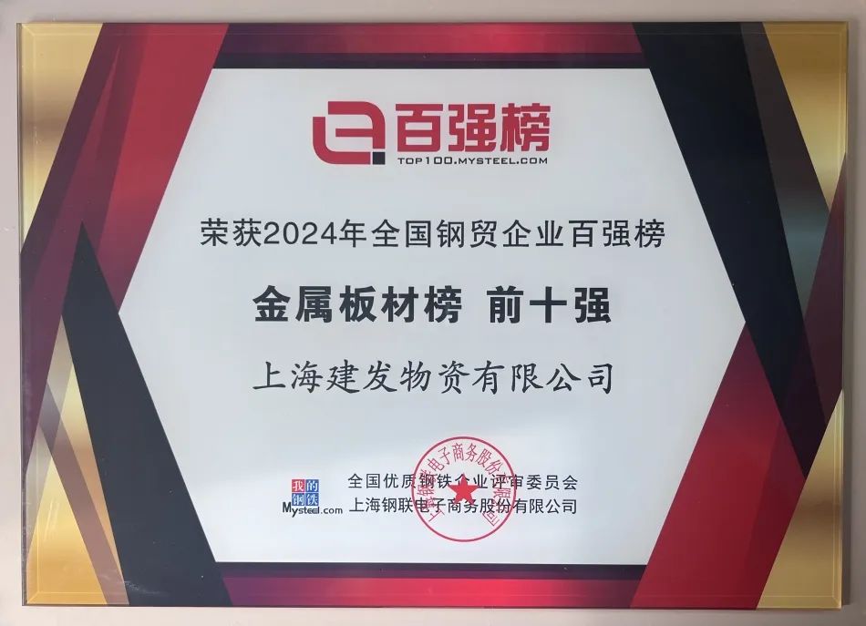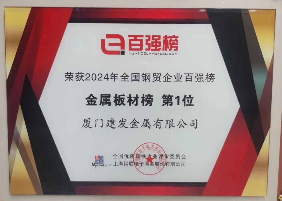 在本屆大會(huì)的2025中國(guó)大宗商品頒獎(jiǎng)慶典上,廈門建發(fā)鋼鐵集團(tuán)有限公司榮獲2024年全國(guó)鋼貿(mào)企業(yè)百?gòu)?qiáng)榜“綜合榜第一位”,建發(fā)鋼鐵集團(tuán)旗下廈門建發(fā)金屬有限公司、上海建發(fā)物資有限公司分別獲得“金屬板材榜第一位”、“金屬板材榜十強(qiáng)”,凸顯了建發(fā)鋼鐵集團(tuán)供應(yīng)鏈運(yùn)營(yíng)綜合實(shí)力及行業(yè)地位。