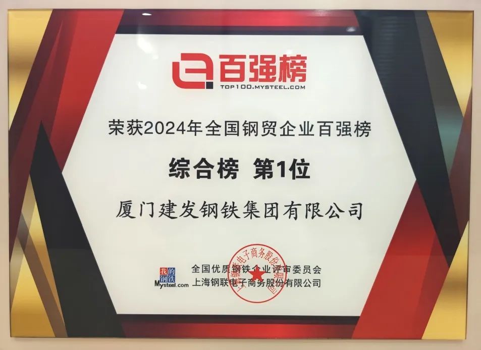 蟬聯(lián)第一 | 建發(fā)鋼鐵集團(tuán)榮獲 2024年全國(guó)鋼貿(mào)企業(yè)百?gòu)?qiáng)榜綜合榜第一位